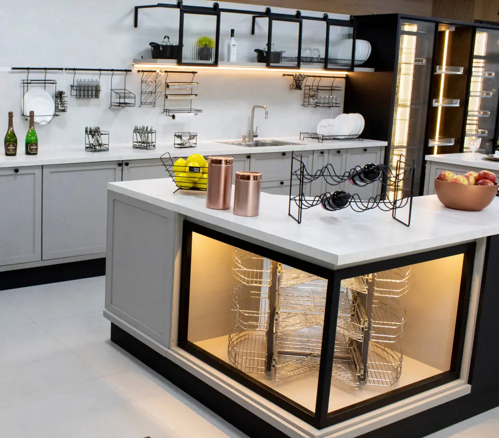 A Linha Classic foi ponderada para projetos que entregam mais detalhes e maior variedade de soluções, além do interior dos móveis, também para a parte aérea.